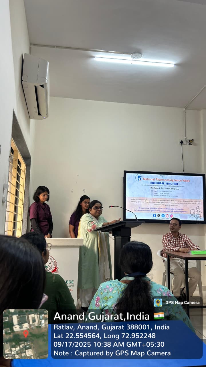 ADR Monitoring Centre, Anand Pharmacy College, in collaboration with IPC–NCC–PvPI, IPA and Shri RamKrishna Seva Mandal commenced the 5th National Pharmacovigilance Week (17th–23rd September 2025) under the theme “Your Safety, Just a Click Away: Report to PvPI.”
