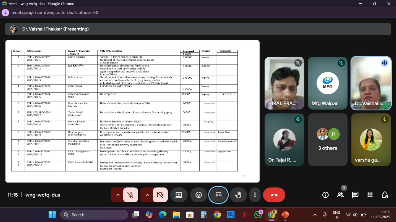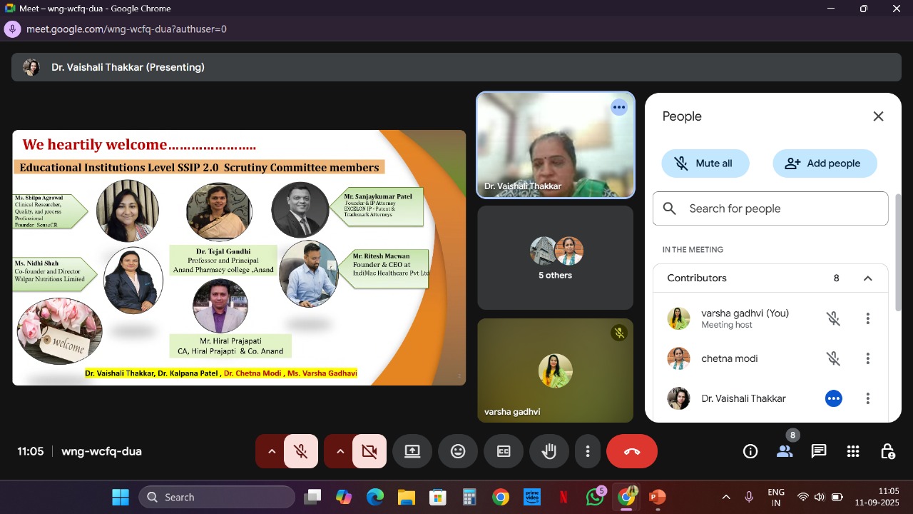 The Institutional-Level SSIP Scrutiny Committee Meeting was successfully conducted online at Anand Pharmacy College.