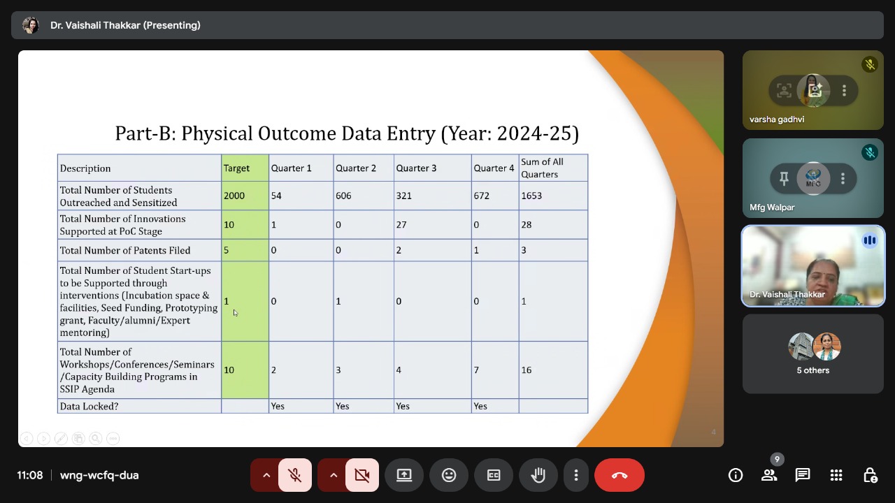 Key discussions focused on innovation programs, IPR filing, startup registration, funding, and financial planning under SSIP 2.0.