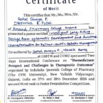 Congratulations to Shreya Gohel! Shreya secured Third Place in the Poster Presentation Competition at the International Conference on “Biomedicines: Prospect and Challenges in Therapeutic Outcomes,” guided by Dr. Hardik Rana.